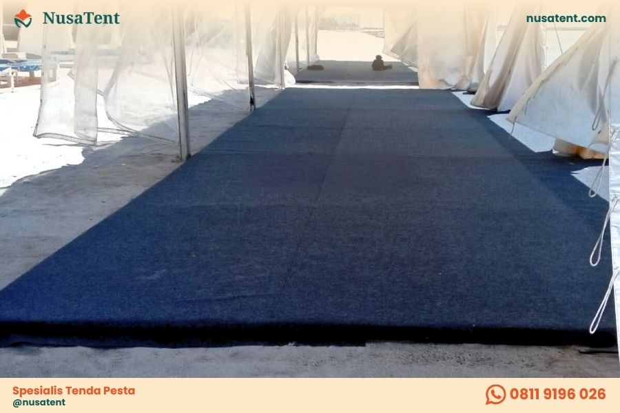 Ingin lantai acara nyaman & elegan? Sewa Flooring Karpet dari NusaTent – pemasangan cepat, anti slip, garansi. Hubungi kami sekarang!